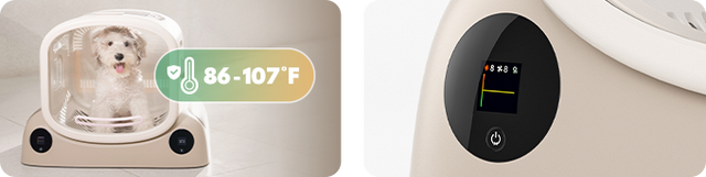 Personnalisez la température pour un séchage parfait de votre animal de compagnie.